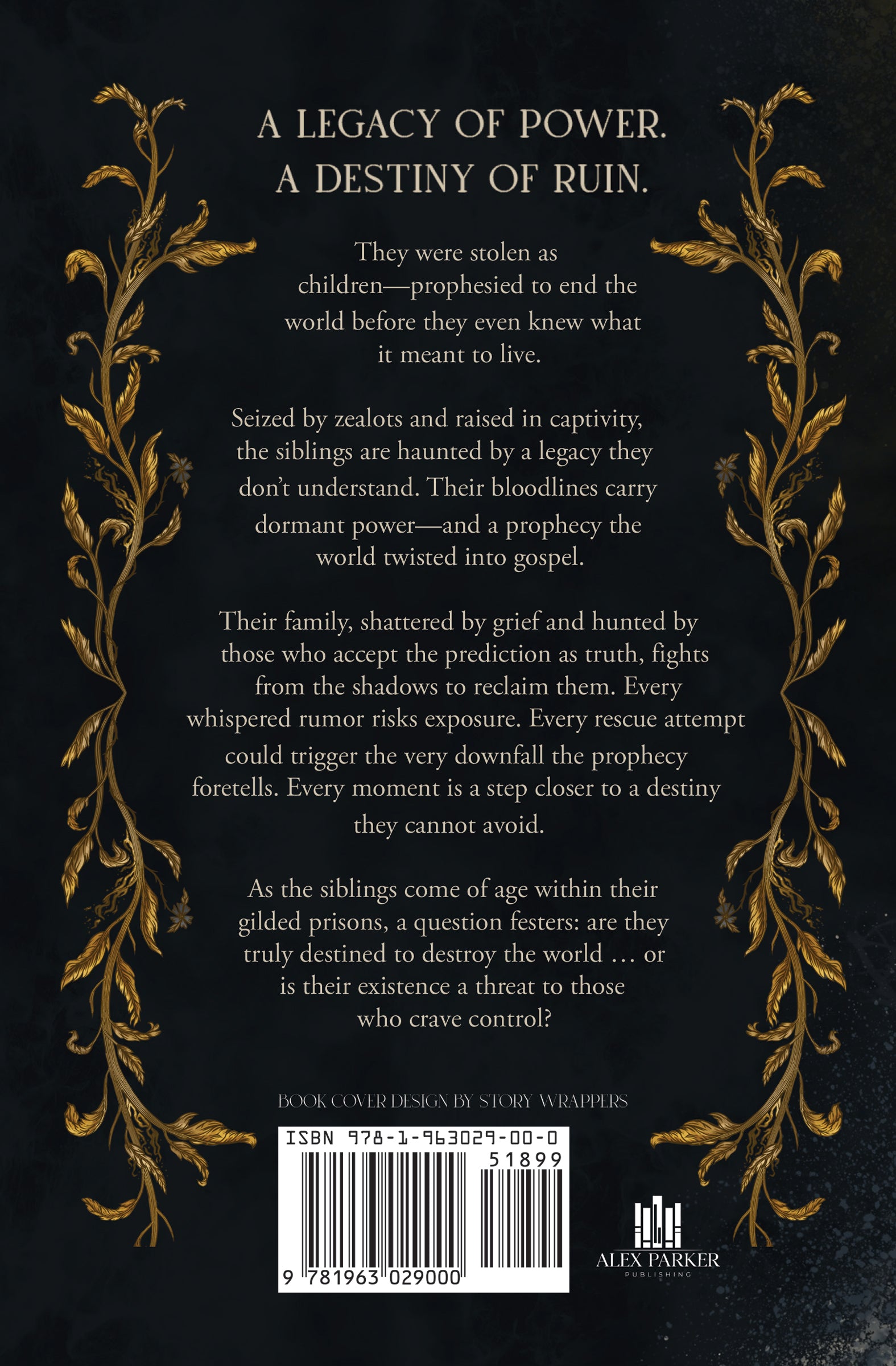 From the shadows, their fractured family fights to reclaim them. But every rumor risks exposure, and every rescue attempt could set the prophecy in motion. As the siblings come of age within their gilded prisons, one question remains: are they destined to destroy the world, or are they simply a threat to those who hunger for control?